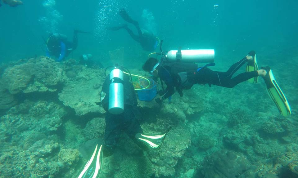 On February 9, 2018. Thavorn Beach Village Resort and Spa coordinate with the department of marine and coastal resources and volunteer dives in Phuket area. Organize activities to planting coral reef rehabilitation at Nakalay Beach, Patong Bay. According to the natural reef restoration projects. By the way, collect that broken coral at fall attach to the big dead coral with the nail and fasten with a cable tie. It can plant to 200 colonies and will be planted periodically with a target of 2,000 or approximately 1 rai in the patong bay area in the year 2018. After planting, the survival and growth rate will be continual monitored.